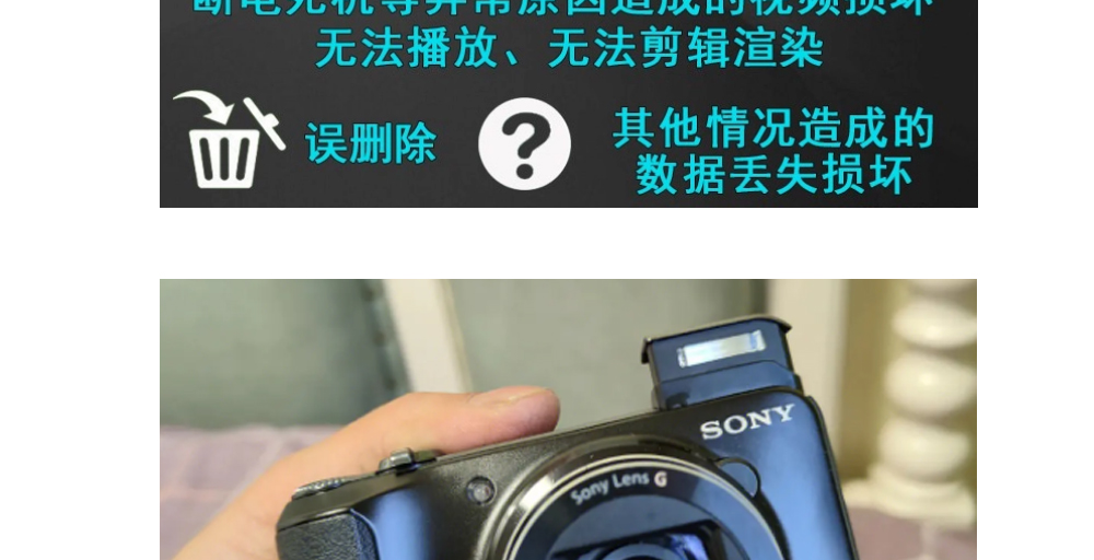 索尼相机进行摄像时,突然断电或死机,导致录制的视频文件无法正常打开或编辑,文件损坏或数据丢失所致。恢复这些珍贵的视频文件。 MP4、MXF、RSV等封装格式的视频文件修复; 文件损坏或数据丢失的恢复; 摄像过程中断电或死机等突发情况的视频文件修复。